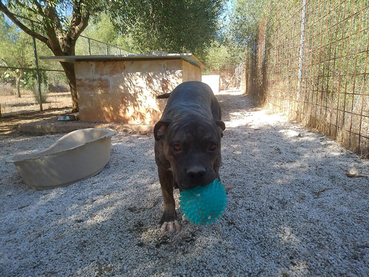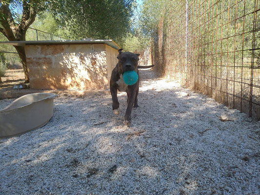 Sein größtes Glück ist jedoch ganz klar: sein Ball. Fede liebt ihn über alles! Wenn gerade niemand Zeit zum Spielen hat, macht er es einfach selbst – lässt ihn rollen, fängt ihn wieder, läuft hinterher. Es ist berührend zu sehen, mit welcher Lebensfreude und Kreativität er sich seine kleinen Glücksmomente schafft.